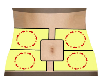 - Ngoài ra, mặt trước bụng có thể chia thành các vòng tròn trong và vòng tròn ngoài (như hình bên dưới), vị trí tiêm có thể xoay vòng theo chiều kim đồng hồ hoặc ngược chiều kim đồng hồ.