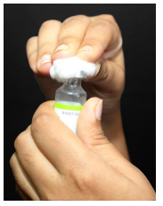 Bước 3: Lau phần trên cùng của lọ Insulin bằng bông phẫu thuật.