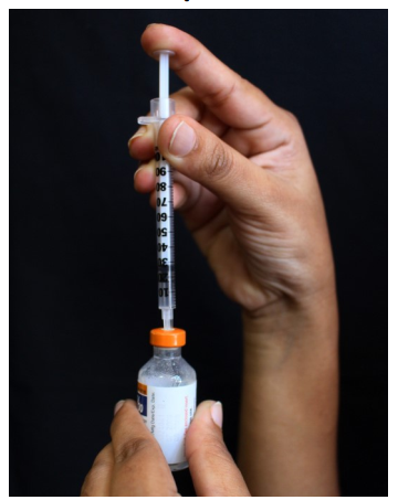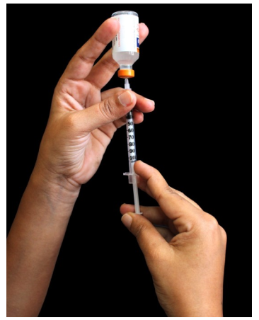 Bước 2: Nếu sử dụng thuốc tiêm dạng hỗn dịch (Insulatard; Mixtard 30; Wosulin 30/70; Insunova 30/70; Insunova-N; Scilin N), lăn lọ thuốc 20 lần giữa 2 lòng bàn tay cho đến khi thuốc trong lọ đồng nhất. Không được lắc lọ thuốc.