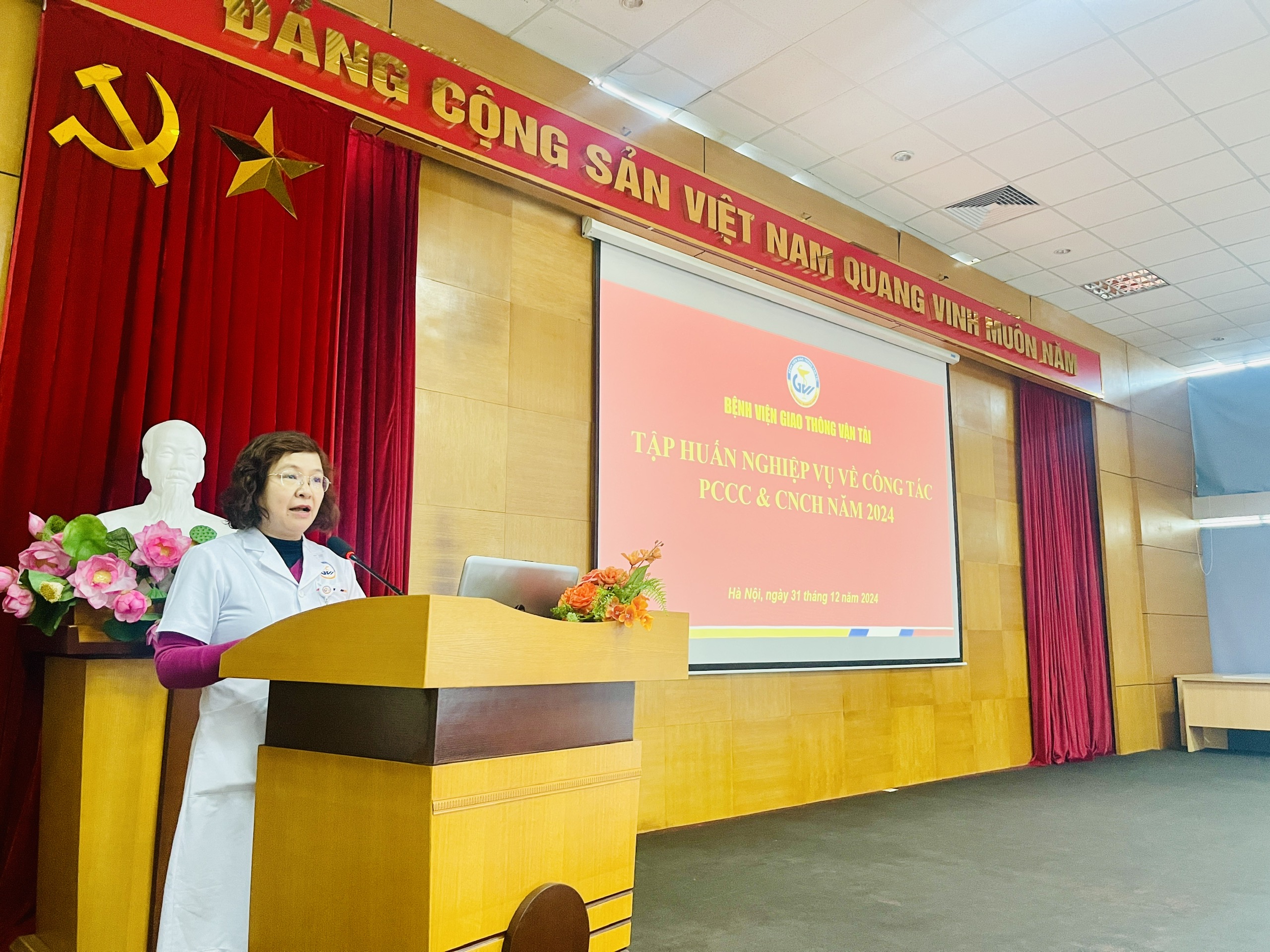 Phát biểu mở đầu buổi tập huấn, TS.BS Nguyễn Thị Thu Hiền - Phó Bí thư Đảng ủy, Phó Giám đốc Bệnh viện cho biết trong thời gian qua, chúng ta liên tục được nghe những thông tin về xảy ra cháy nổ lớn trên địa bàn Hà Nội cũng như các địa phương. Và chính Bệnh viện Giao thông vận tải cũng là đơn vị y tế tiếp nhận, cấp cứu cho những bệnh nhân trong vụ cháy tại Trung Kính tháng 5/2024 vừa qua.