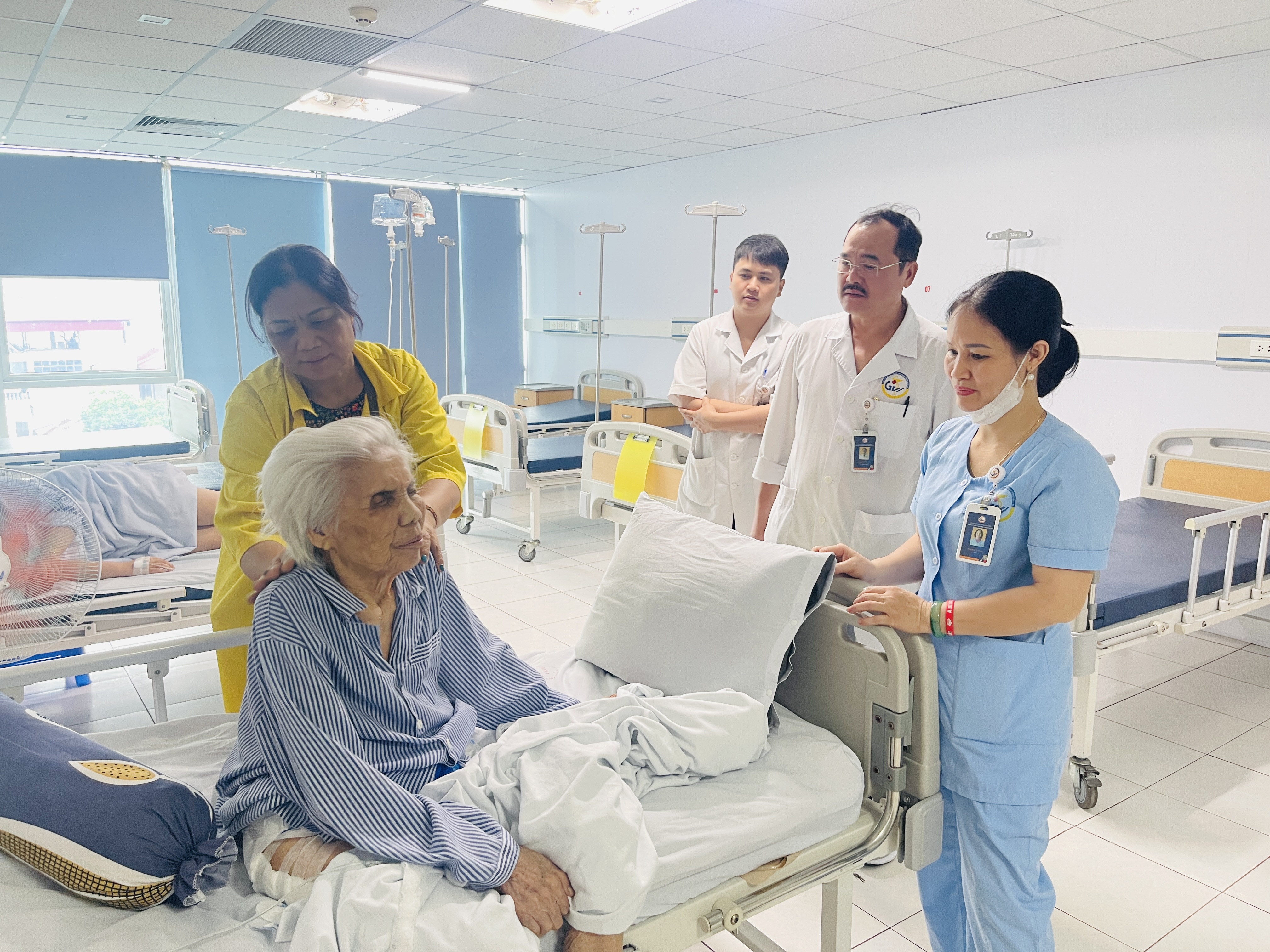 Con gái cụ N.T.D, người trực tiếp chăm sóc cụ tại viện chia sẻ: “Nhà chúng tôi ngay gần Bệnh viện Giao thông vận tải và cụ có bảo hiểm y tế đăng ký tại viện, khi thấy tình hình cụ có chuyển biến không tốt, chúng tôi đã đưa mẹ vào viện. Gia đình cảm thấy rất an tâm khi các bác sĩ, điều dưỡng của Bệnh viện Giao thông vận tải tận tình, chu đáo thăm khám, điều trị cho mẹ tôi. Các chị hộ lý của khoa cũng rất tốt, kể cả đêm hôm vẫn hỗ trợ gia đình nhiệt tình. Mặc dù đi viện nhưng chúng tôi có cảm giác gần gũi như ở nhà”.
