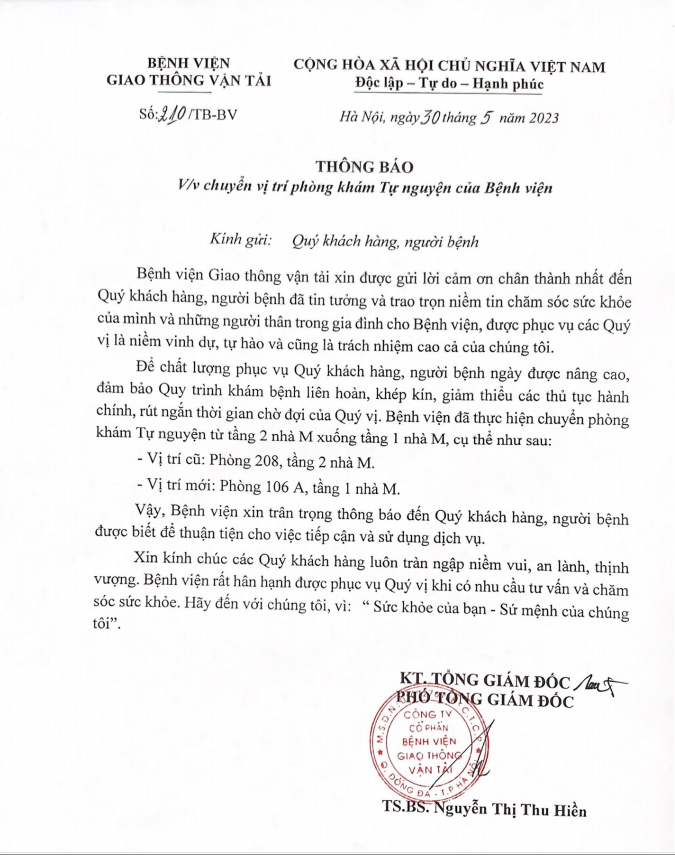 Thông Báo: về việc chuyển vị trí phòng khám Tự nguyện của Bệnh viện12:01 - 31/05/2023Thông tin, Thông tin chung, Thông Báo: về việc chuyển vị trí phòng khám Tự nguyện của Bệnh viện Tải xuống benh vien.pdfChia sẻ: