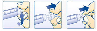 - Đậy nắp ngoài vào kim tiêm, và dùng nó để vặn kim ra khỏi bút tiêm. Để tránh nguy cơ vô tình bị kim đâm phải, đừng bao giờ đậy kim bằng nắp trong.