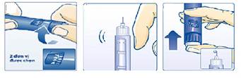 - Xoay nút chọn liều tiêm để chọn số đơn vị cần tiêm. Thông thường cứ xoay 1 đơn vị sẽ nghe thấy 1 tiếng tách.