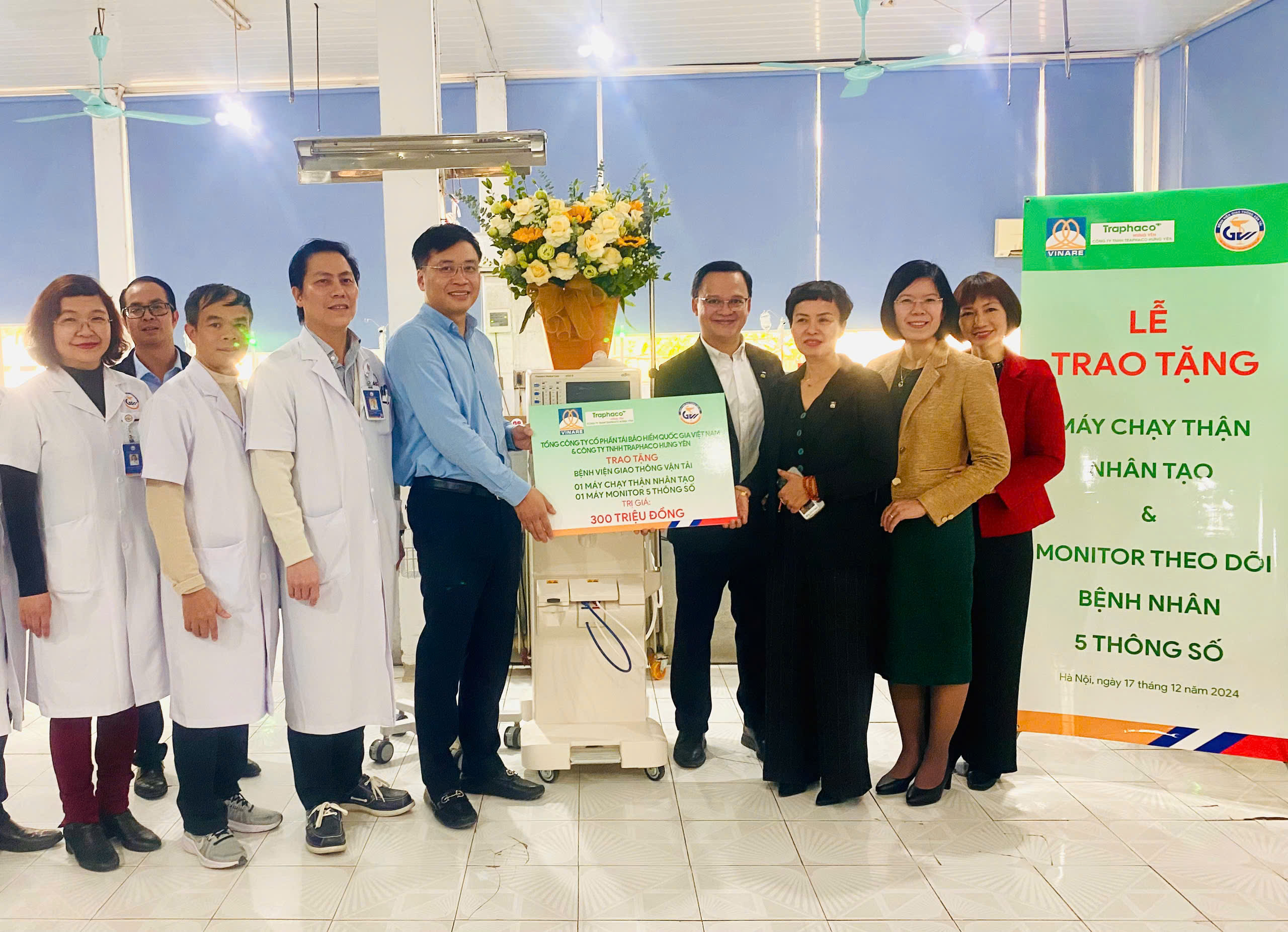Chiều 17/12/2024, Tổng Công ty Cổ phần tái bảo hiểm Quốc gia Việt Nam và Công ty TNHH Traphaco Hưng Yên đã trao tặng 01 máy lọc máu và 01 máy monitor theo dõi bệnh nhân cho Bệnh viện Giao thông vận tải.