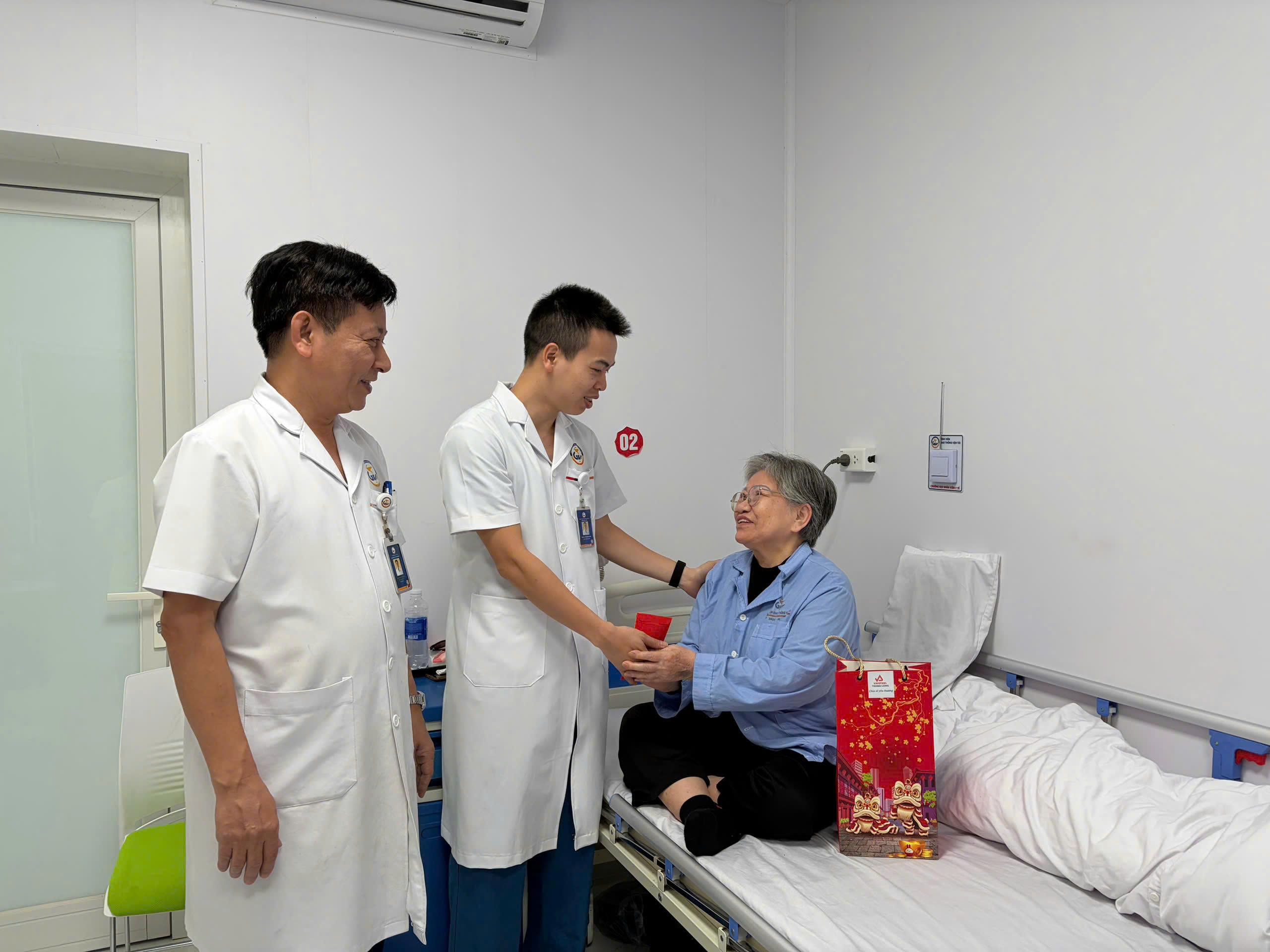 Ngay sau phần lễ, Ban Tổ chức đã trao tặng 180 suất quà gồm bánh chưng, giò và 180 suất lì xì trị giá 500.000 đồng/suất cho các bệnh nhân tại Khoa Cấp cứu, Khoa Nội tổng hợp 1 và Khoa Thận tiết niệu – Lọc máu. Những phần quà ý nghĩa đã góp phần mang đến niềm vui, tiếp thêm nghị lực để người bệnh vượt qua khó khăn, chiến đấu với bệnh tật.